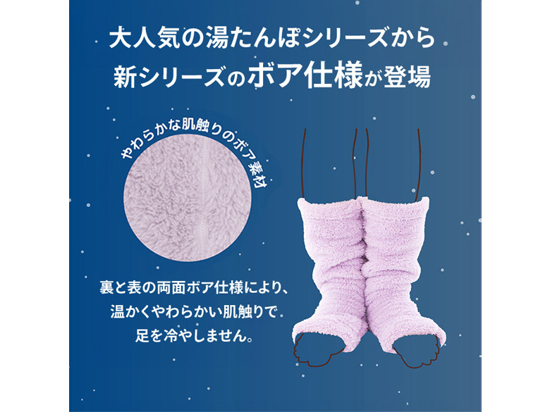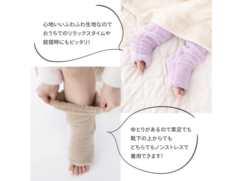 ふわふわで柔らかな肌ざわりのボア素材で足をしっかり温めます。