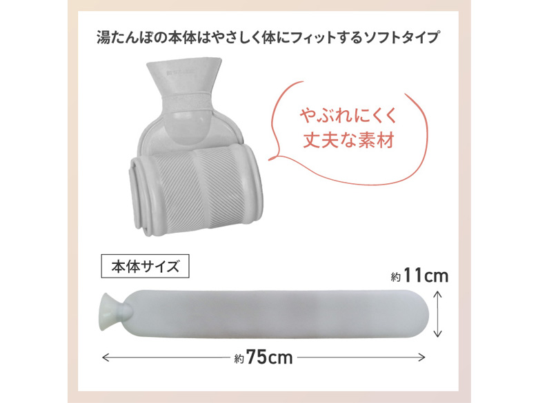湯たんぽの本体はやさしく体にフィットするソフトタイプ。