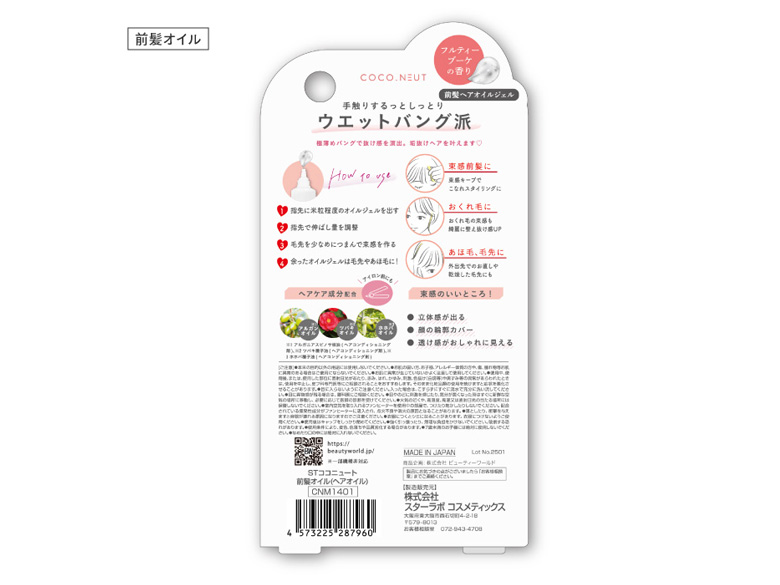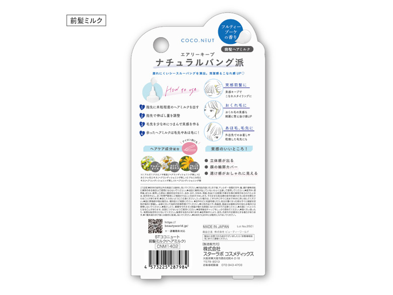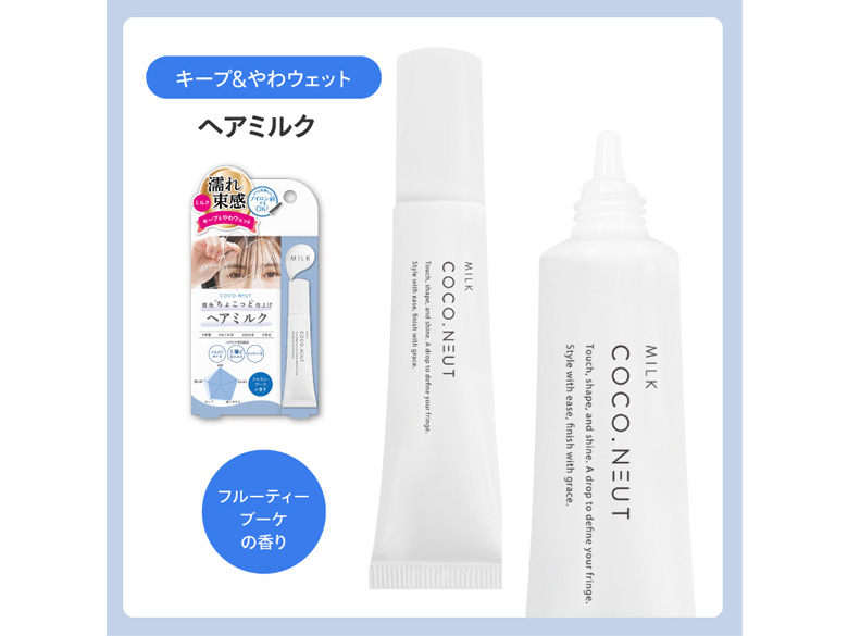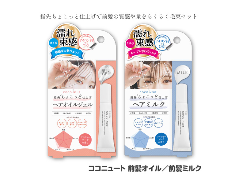 前髪に束感をつけることで、質感や量を変えられるオイル&ミルクです。