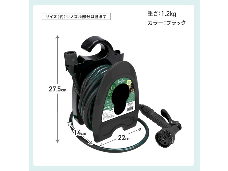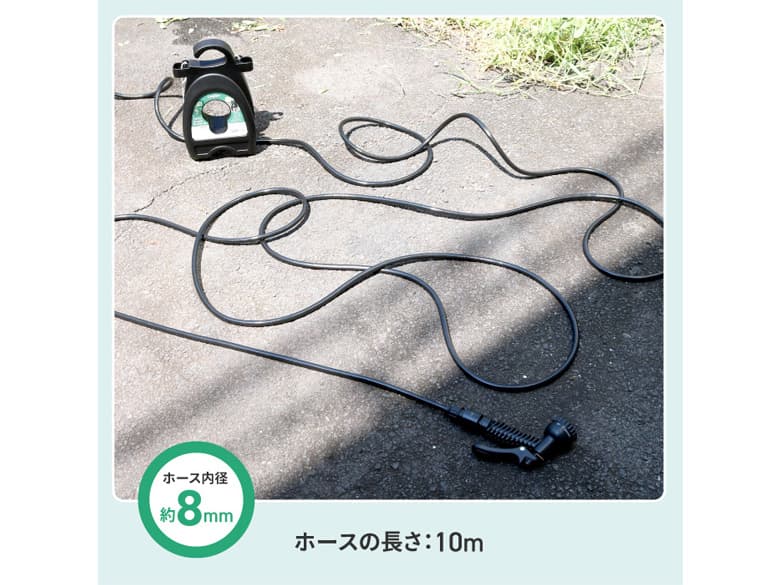 | サイズ/寸法 | ホース長さ:約10m ホース内径:約8mm 寸法:約縦14.0×横22.0×H27.5cm(ノズル部分は除く) |