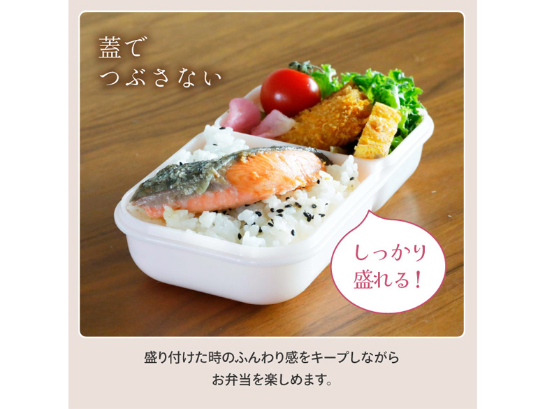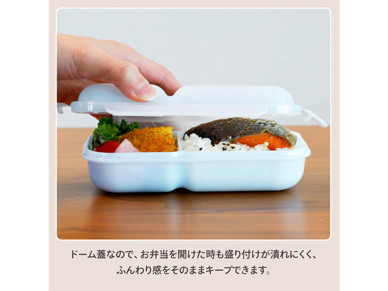 蓋がドーム型なので盛り付けたときのふんわり感をキープしながらお弁当を楽しめます。