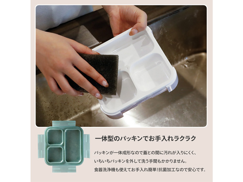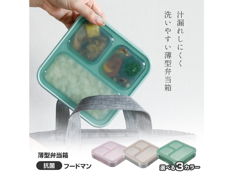 汁漏れしにくく洗いやすい薄型弁当箱