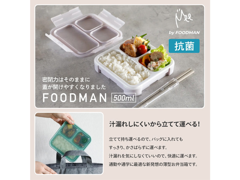 [フードマン] 薄型弁当箱 抗菌フードマン 500ml グレージュ