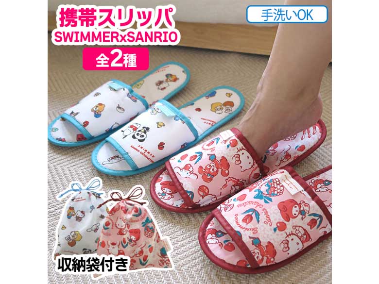 サンリオ×SWIMMER(スイマー)コラボデザインの携帯スリッパです。