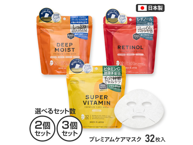 プレミアムケアマスク32枚入レチノール/スーパービタミン/ディープモイスト【2袋セット】