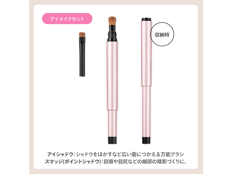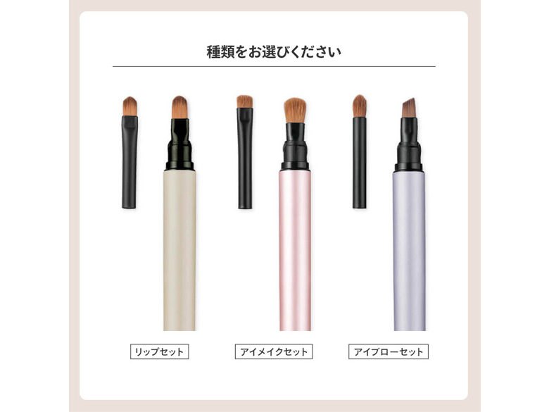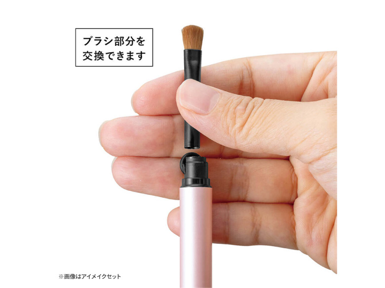 1つの本体でブラシ部分を交換できるメイクブラシ