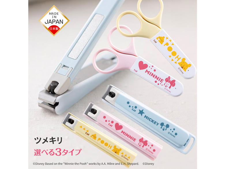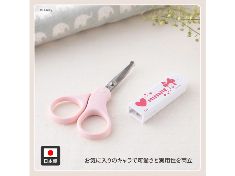 ハサミタイプのツメキリは先が丸く安全でサビに強いステンレス製。