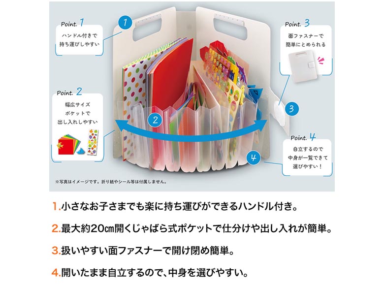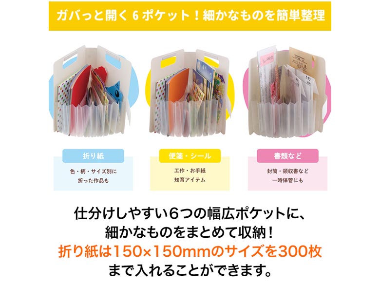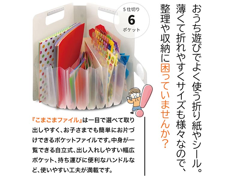 ・折り紙やシールなどの細かな文房具類を整理・収納できるポケットファイル。