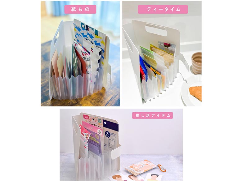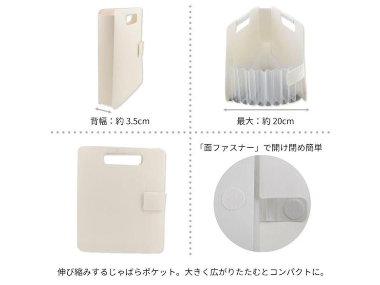 ・じゃばら式の幅広サイズポケットで出し入れしやすい。