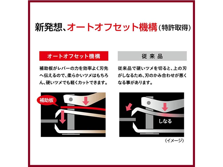 ・新発想の切れ味、オートオフセット機構(特許取得済)!
