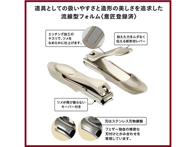 ・日本品質の進化形で「スッと軽い切れ味」の爪切りです。