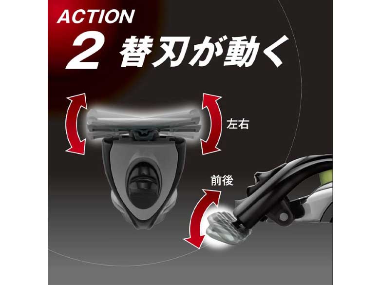 2つのアクションにより、今までにない肌への密着を実現。フェザーが開発した独自のアクションとして特許を取得しています。