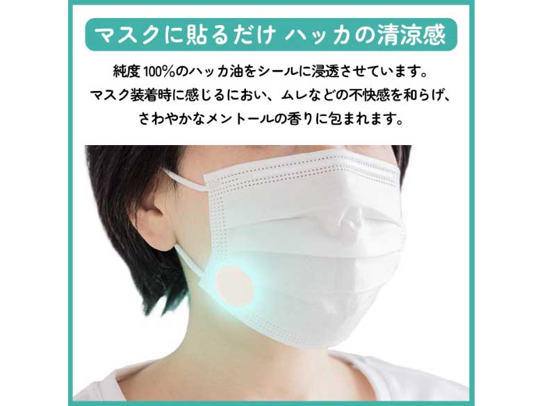 マスク装着時に感じるにおい、ムレなどの不快感を和らげ、さわやかなメントールの香りに包まれます。