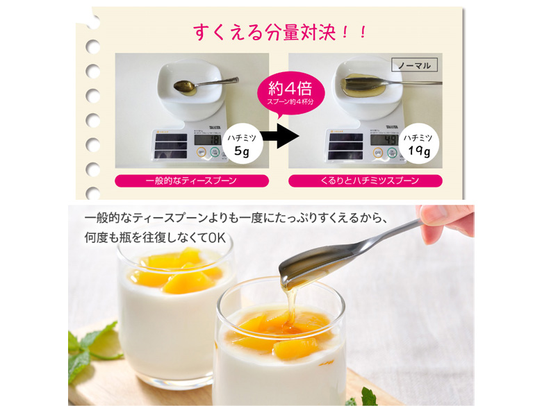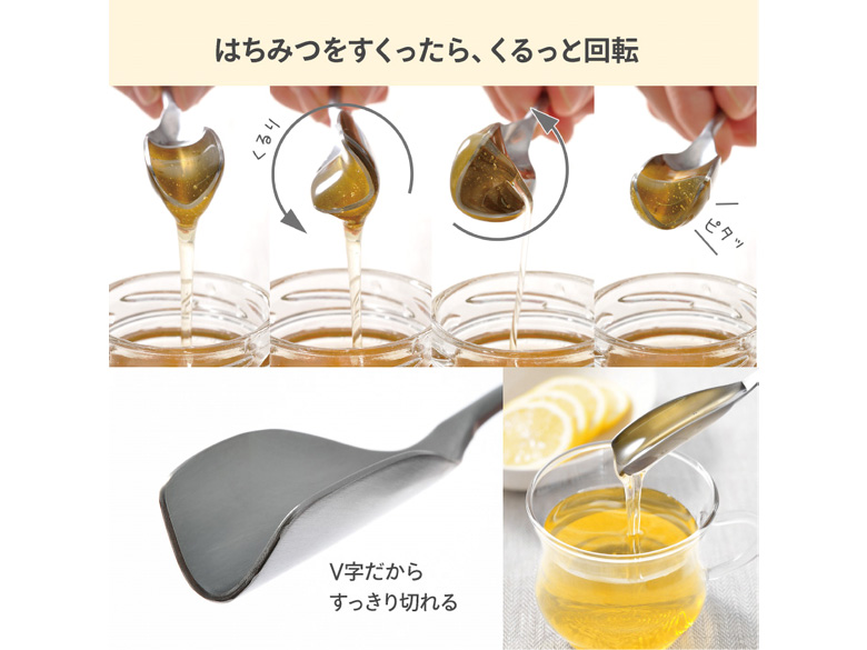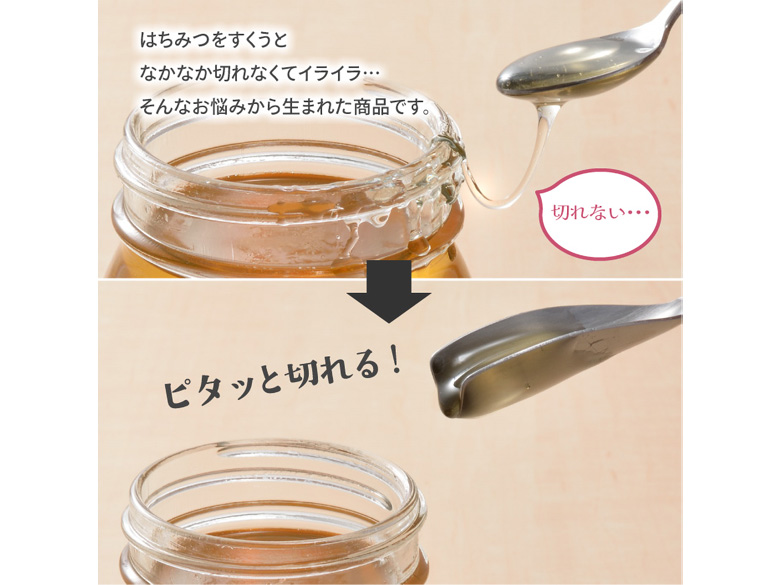 はちみつをすくうとなかなか切れなくてイライラ…そんなお悩みから生まれた商品です。