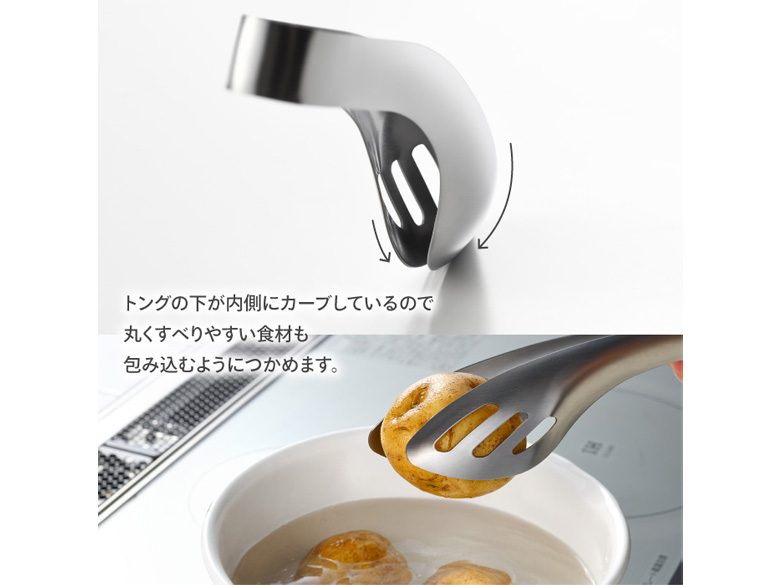 ずっしり重いサツマイモも、ゆで卵もガッシリつかめます。