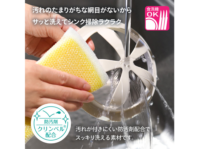 汚れのたまりがちな網目がないので、サッと洗えて排水口の掃除が楽になります。