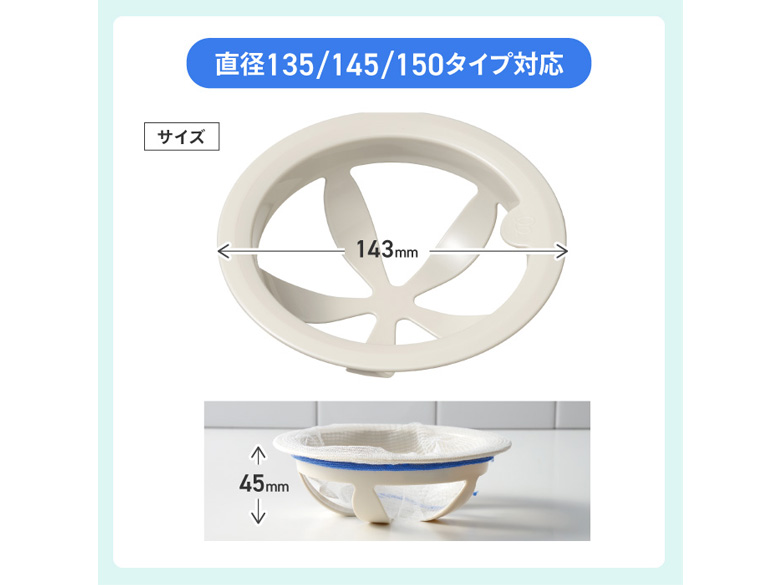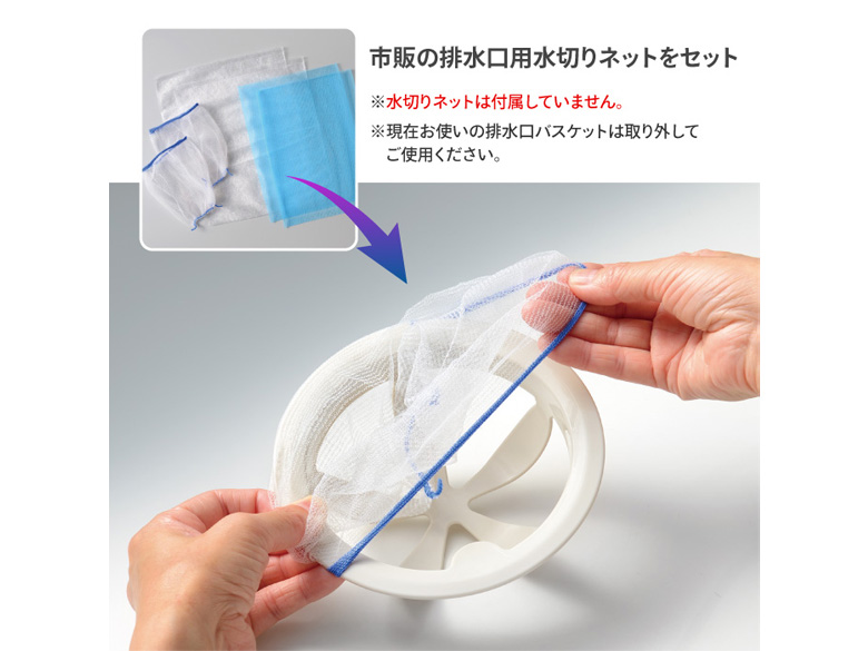 ストッキングタイプ、不織布タイプなど、各種水切りネットに対応しています。