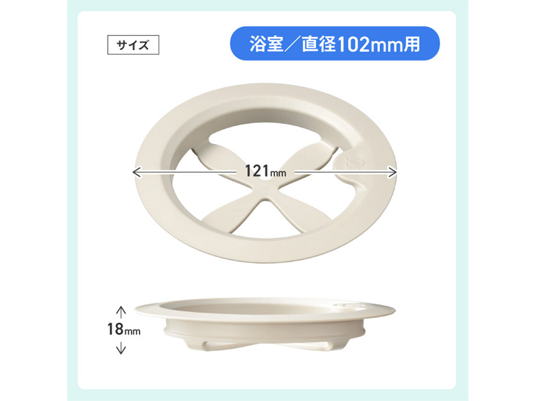 | サイズ/寸法 | 浴室/直径102mm用 外径寸法:直径121x高さ18mm |