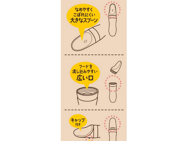 ●やわらか本体で流動食やペースト状のフードを押し出して与えられる。