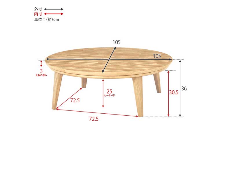 | サイズ/寸法 | (約)幅105×奥行105×高さ36cm |
