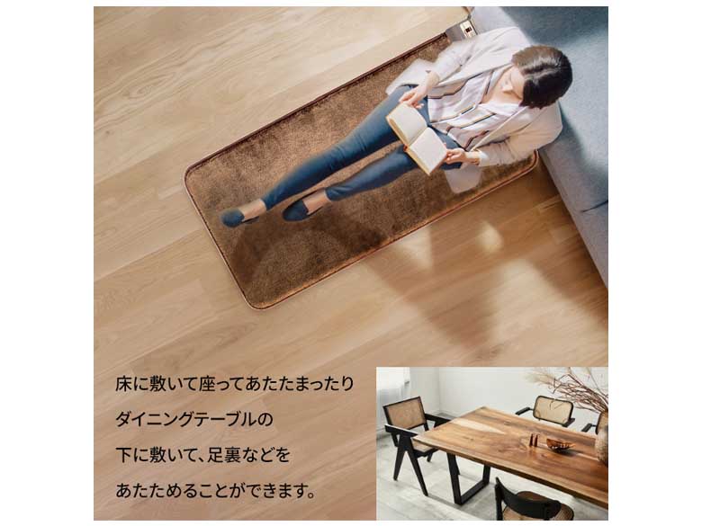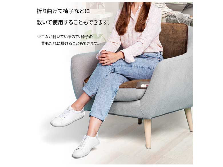 床に敷いても、折り曲げて椅子にも使えるホットマットです。吸湿発熱素材テクノヒートであたたかく上質な肌触りです。