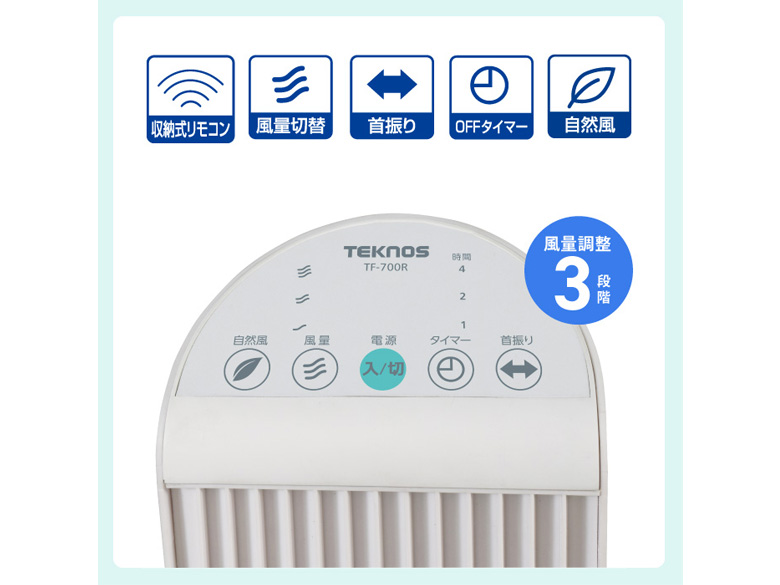 [テクノス] リモコンタワー扇風機【TF-700R】