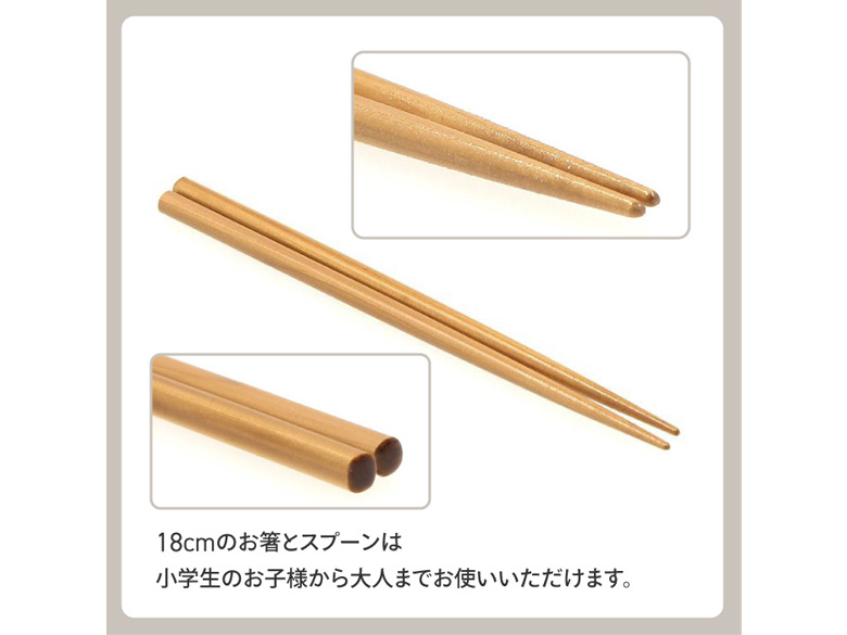 18cmのお箸とスプーンは小学生のお子様から大人までお使いいただけます。