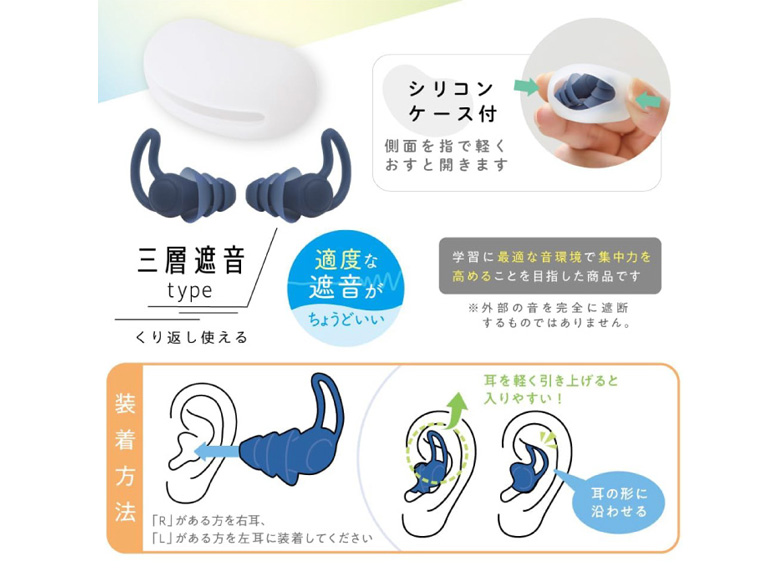 暗記効率アップに。耳栓をつけた状態で音読すると、自分の声だけ頭の中に響くため、単語等の暗記にオススメ!