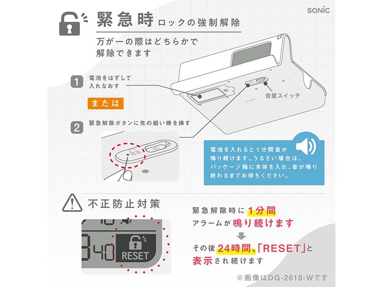 ・緊急時はロックを強制解除できます。
