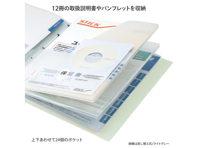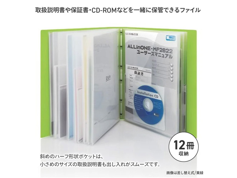 取扱説明書や保証書・CD-ROMなどを一緒に保管できるファイル。