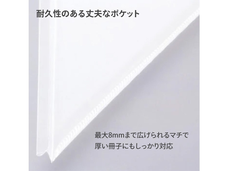 斜めのハーフ形状ポケットは、小さめのサイズの取扱説明書も出し入れがスムーズです。