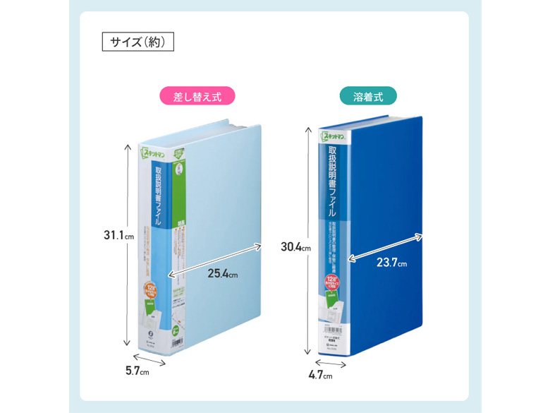 | サイズ/寸法 | サイズ:A4タテ型 表紙寸法:304(H)×237(W)×47(D)mm 表紙厚:0.9mm |