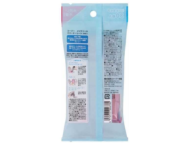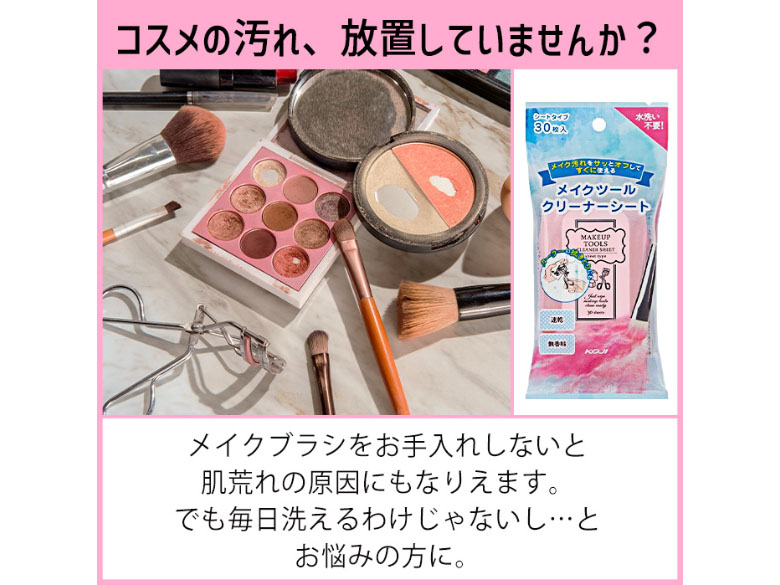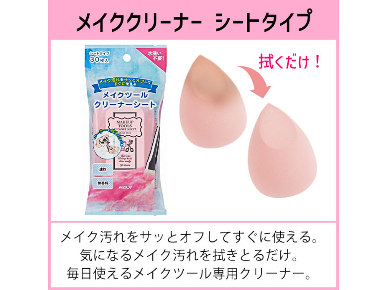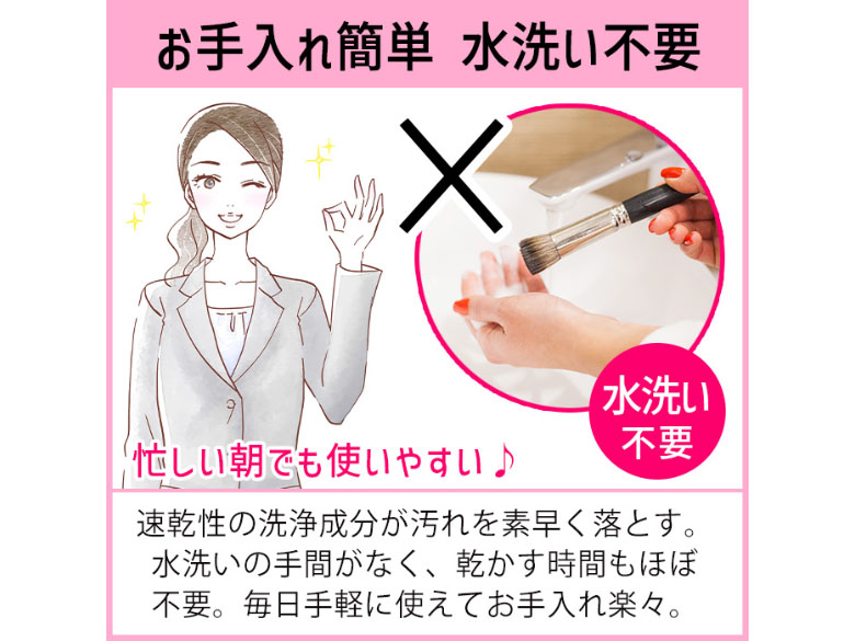・メイク汚れをサッと拭きとって、使用後は水洗いが不要です。