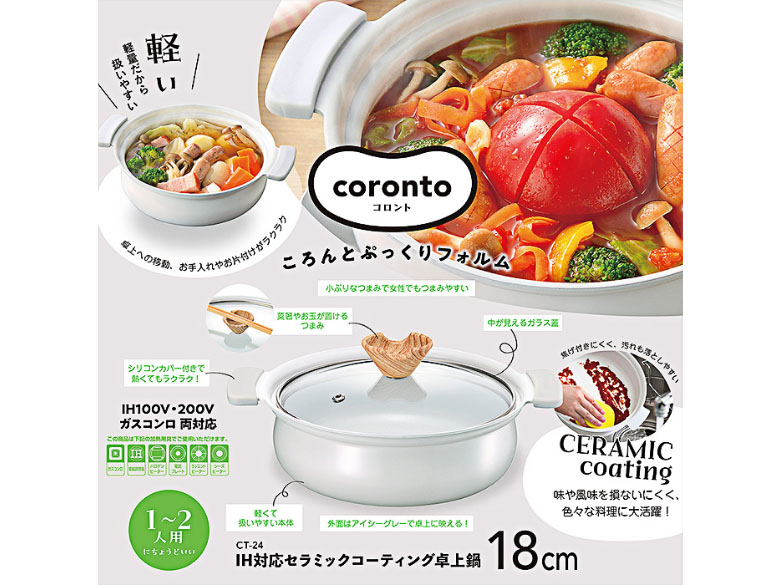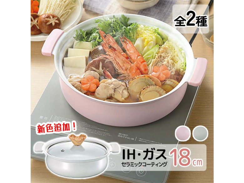 コロント セラミックコーティング 卓上鍋 18cm IH対応 ガス対応 グレー