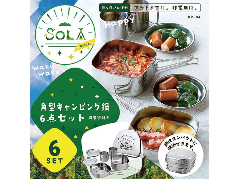 ソラリラ SOLA Relax カクセー 角型キャンピング鍋6点セット
