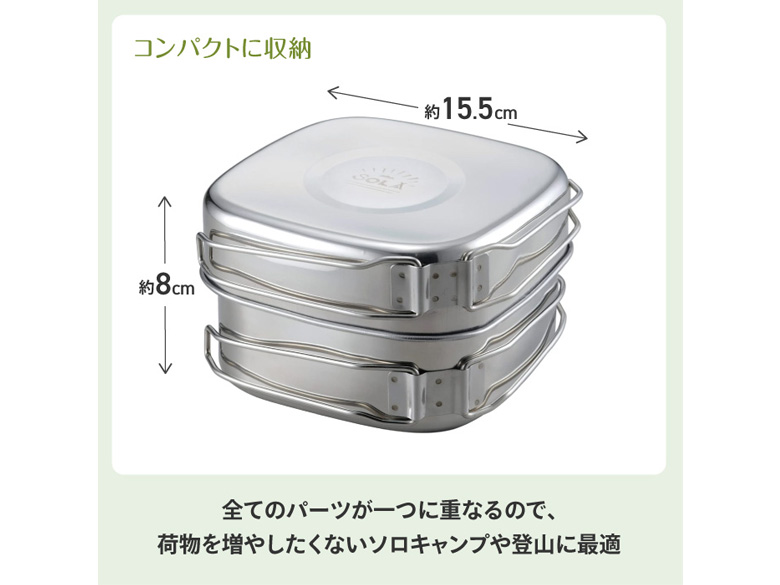 [カクセー] SOLA Relax ソラリラ 角型キャンピング鍋 6点セット