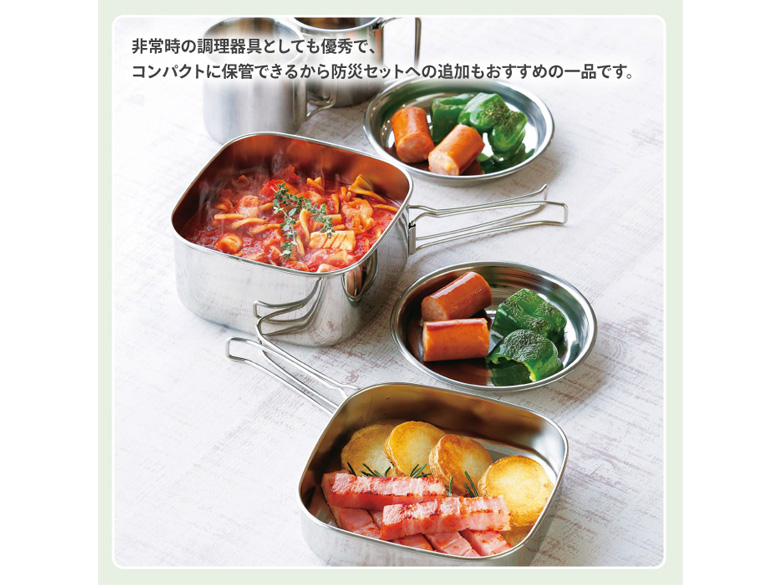 | 内容量 | 角型鍋・角型フライパン・小皿×2・マグカップ×2・携帯袋 |