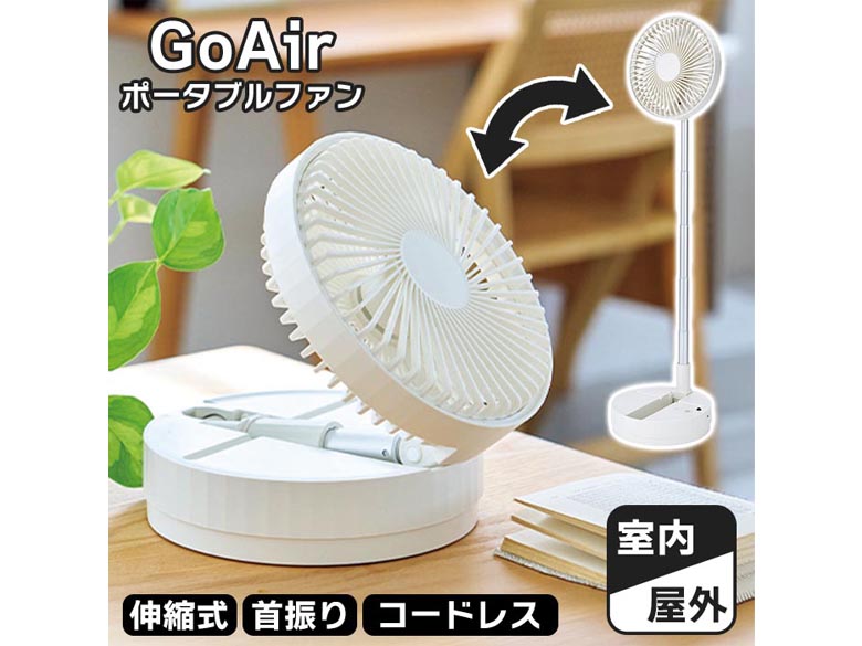 GoAir 伸縮式 首振り ポータブルファン 扇風機