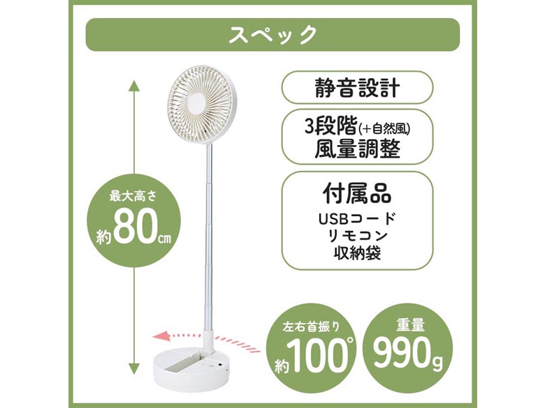 [カクセー]GoAir伸縮式首振りポータブルファン