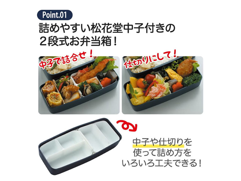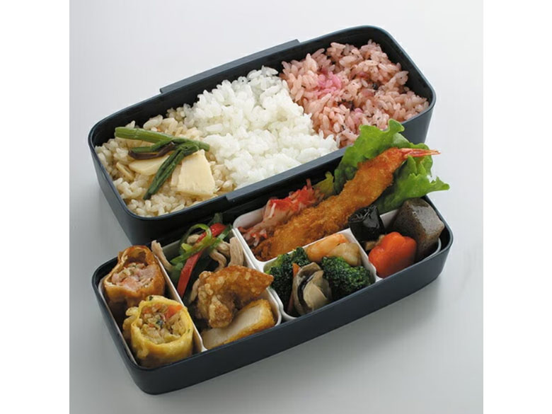 また、ご飯いれにも仕切りがついていますので、下の段にもおかずを入れることができます。
