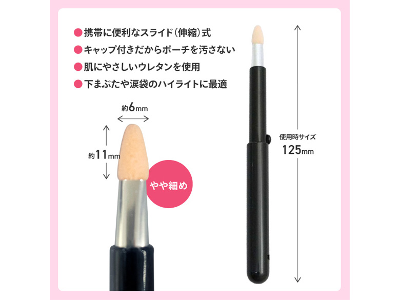 携帯に便利なスライド(伸縮)式で、キャップ付きのためポーチを汚さず持ち運びが可能。