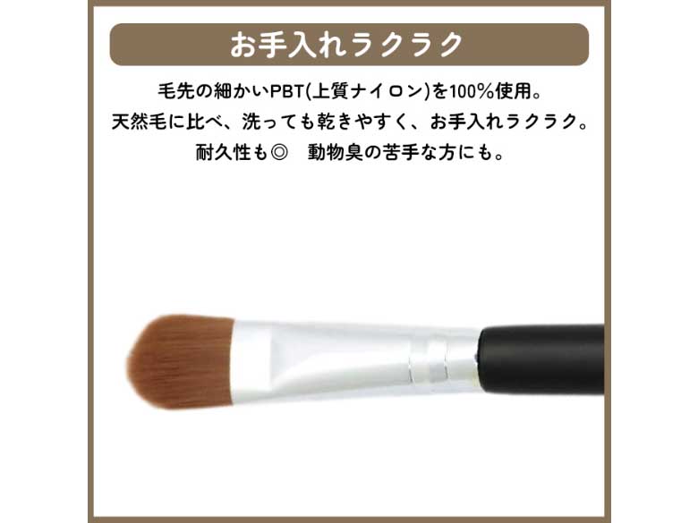 ●毛先の細かいPBT(上質ナイロン)を使用した、やさしい肌触りのコンシーラーブラシ