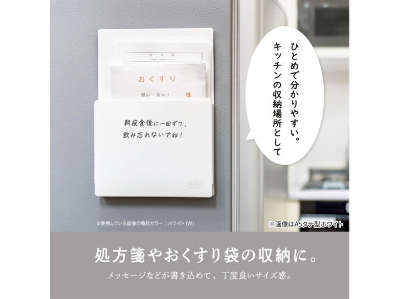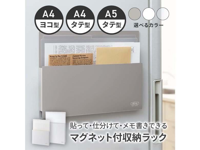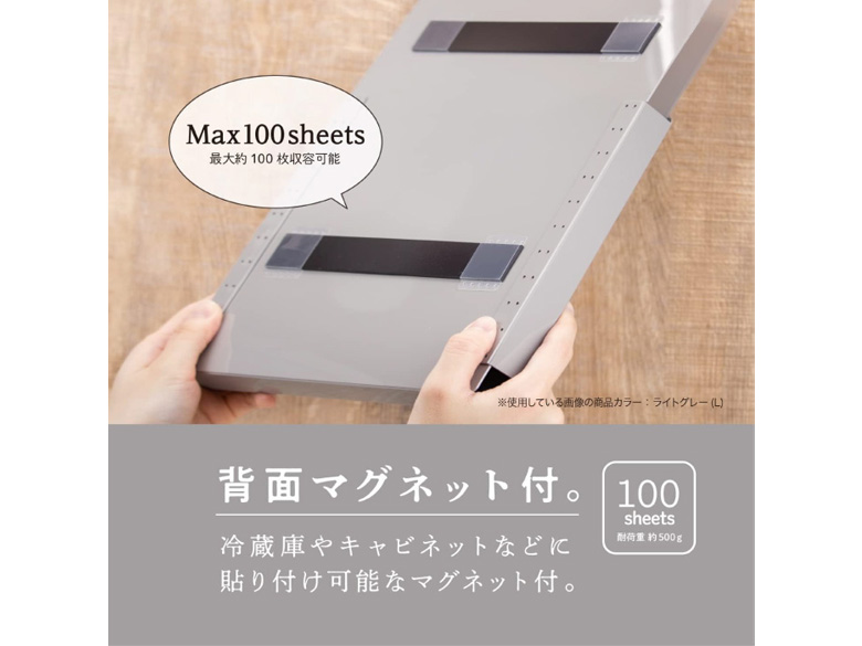 冷蔵庫やキャビネットなどに貼って、冊子や書類をすっきり収納でき、