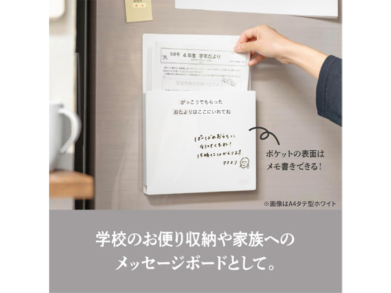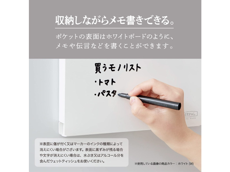 ポケットの表面はホワイトボードのように、メモや伝言などを書くことができます。
