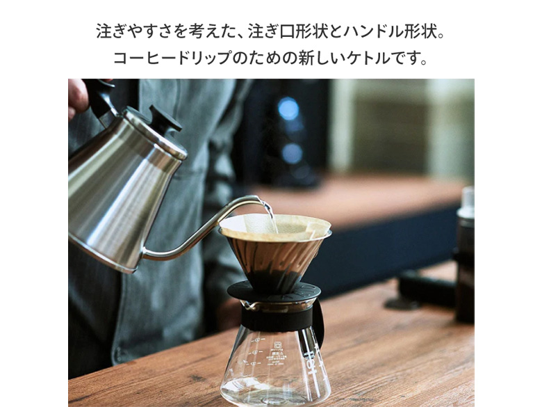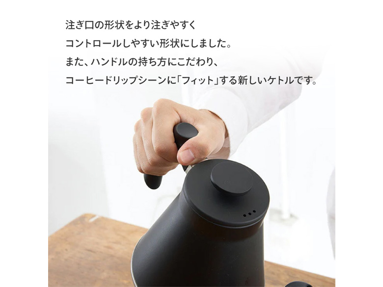 また、ハンドルの持ち方にこだわり、コーヒードリップシーンに「フィット」する新しいケトルです。