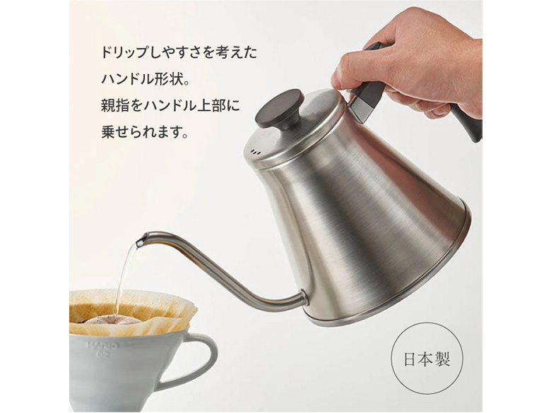 ■ドリップしやすさを考えたハンドル形状。親指をハンドル上部に乗せられます。