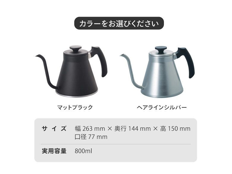注ぎ口の形状をより注ぎやすくコントロールしやすい形状にしました。