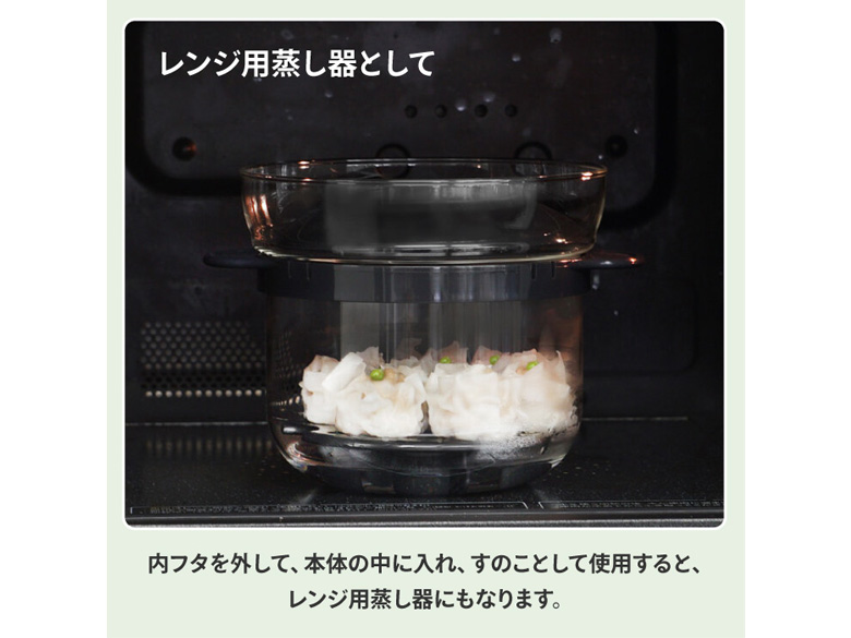 内フタを外して、本体の中に入れ、すのことして使用すると、レンジ用蒸し器にもなります。