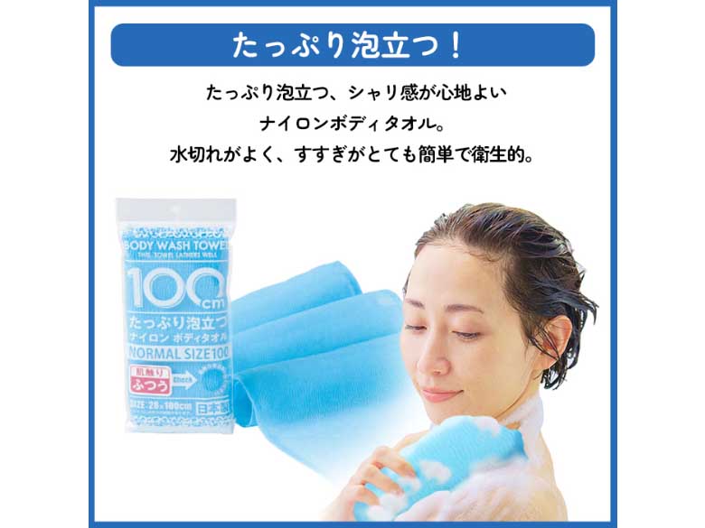 ●シャリ感が心地よいボディタオル。水きれがよくすすぎがとても簡単で衛生的です