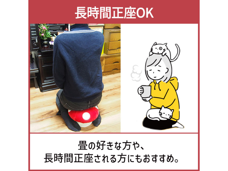 正座をして姿勢を保ち、足もしびれないで色んな場面に大活躍。